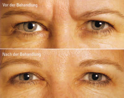 Durch die Injektion in die Haut kann es manchmal zu Hautreizung, Schwellung oder einem kleinen Bluterguß kommen. Alle Nebenwirkungen bilden sich innerhalb weniger Tage zurück. Die immer wieder berichtete Absenkung des Oberlides über einige Wochen kann bei einer korrekten Technik weitgehend vermieden werden.